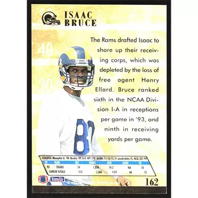 This is a 1994 Ultra Isaac Bruce football card. The card is #162 and pictures show condition.