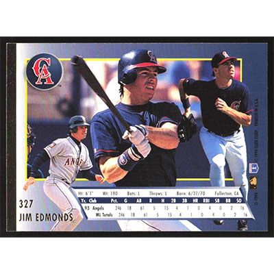 This is a 1994 Ultra Jim Edmonds baseball card. The card is #327 and pictures show condition.