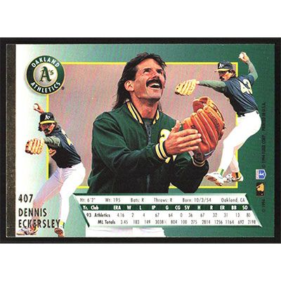 This is a 1994 Ultra Dennis Eckersley baseball card. The card is #407 and pictures show condition.
