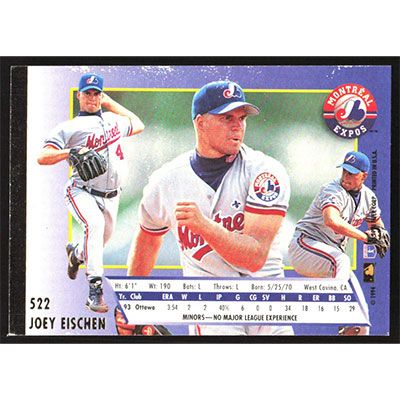 This is a 1994 Ultra Joey Eischen baseball card. The card is #522 and pictures show condition.