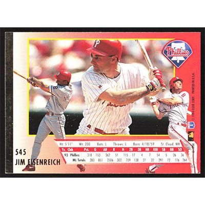 This is a 1994 Ultra Jim Eisenreich baseball card. The card is #545 and pictures show condition.