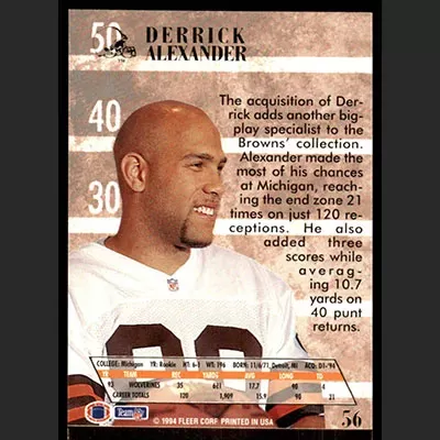 This is a 1994 Ultra Derrick Alexander football card. The card is #56 and is in NM-MT condition.