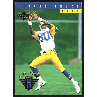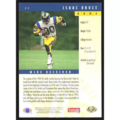 This is a 1994 Upper Deck Isaac Bruce Star Rookie football card. The card is #22 and pictures show condition.