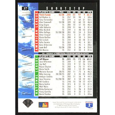 This is a 1994 Upper Deck Travis Fryman Fantasy Team baseball card. The card is #37 and pictures show condition.