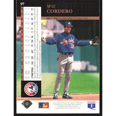 This is a 1994 Upper Deck Wil Cordero baseball card. The card is #97 and pictures show condition.