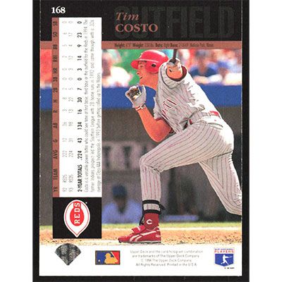 This is a 1994 Upper Deck Electric Diamond Tim Costo baseball card. The card is #168 and pictures show condition.
