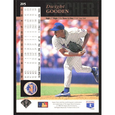 This is a 1994 Upper Deck Electric Diamond Dwight Gooden baseball card. The card is #205 and pictures show condition.