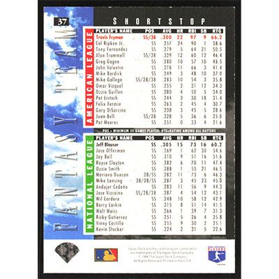 This is a 1994 Upper Deck Electric Diamond Travis Fryman Fantasy Team baseball card. The card is #37 and pictures show condition.