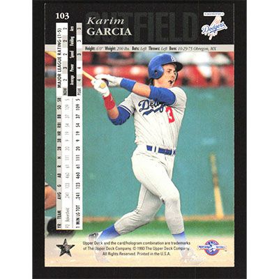 This is a 1994 Upper Deck Minors Karim Garcia baseball card. The card is #103 and pictures show condition.