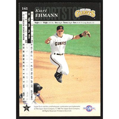 This is a 1994 Upper Deck Minors Kurt Ehmann baseball card. The card is #141 and pictures show condition.