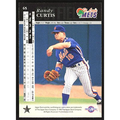 This is a 1994 Upper Deck Minors Randy Curtis baseball card. The card is #65 and pictures show condition.