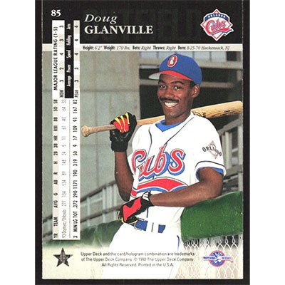 This is a 1994 Upper Deck Minors Doug Glanville baseball card. The card is #85 and pictures show condition.