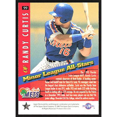 This is a 1994 Upper Deck Minors Randy Curtis All-Stars Foil baseball card. The card is #99 and pictures show condition.