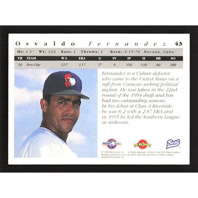 This is a 1995 Best Osvaldo Fernandez baseball card. The card is #43 and pictures show condition.