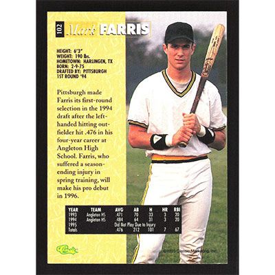 This is a 1995 Classic Five Sport Mark Farris baseball card. The card is #102 and pictures show condition.