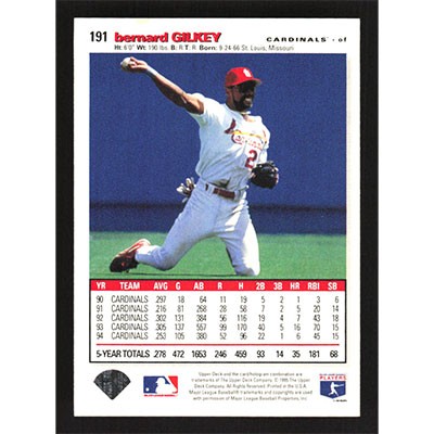 This is a 1995 Collector's Choice Bernard Gilkey baseball card. The card is #191 and pictures show condition.