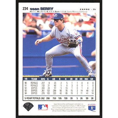 This is a 1995 Collector's Choice Sean Berry baseball card. The card is #234 and pictures show condition.