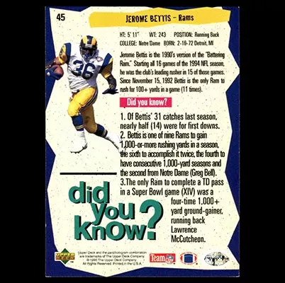 This is a 1995 Collector's Choice Jerome Bettis Did You Know? football card. The card is #45. See images for condition.
