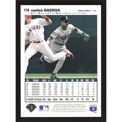 This is a 1995 Collector's Choice SE Carlos Baerga baseball card. The card is #118 and pictures show condition.