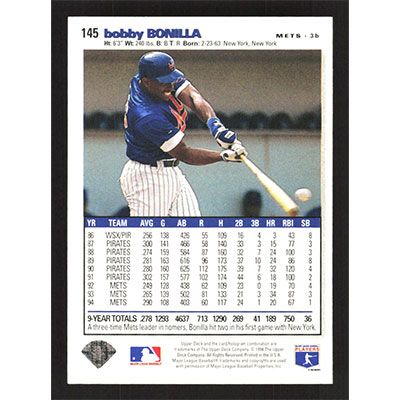 This is a 1995 Collector's Choice SE Bobby Bonilla baseball card. The card is #145 and pictures show condition.