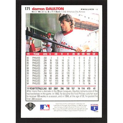 This is a 1995 Collector's Choice SE Darren Daulton baseball card. The card is #171 and pictures show condition.