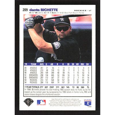 This is a 1995 Collector's Choice SE Dante Bichette baseball card. The card is #209 and pictures show condition.