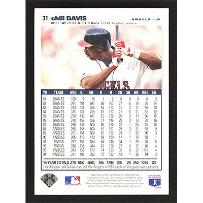 This is a 1995 Collector's Choice SE Chili Davis baseball card. The card is #31 and pictures show condition.
