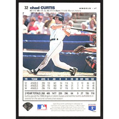 This is a 1995 Collector's Choice SE Chad Curtis baseball card. The card is #32 and pictures show condition.