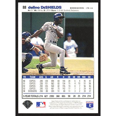 This is a 1995 Collector's Choice SE Delino DeShields baseball card. The card is #88 and pictures show condition.