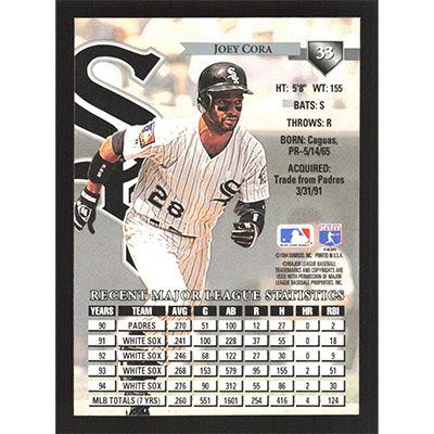 This is a 1995 Donruss Joey Cora baseball card. The card is #33 and pictures show condition.