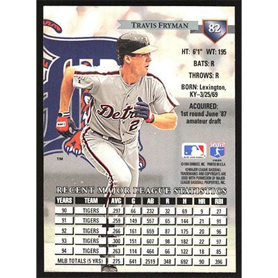 This is a 1995 Donruss Travis Fryman baseball card. The card is #82 and pictures show condition.