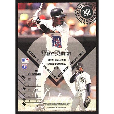 This is a 1995 Leaf Danny Bautista baseball card. The card is #248 and pictures show condition.