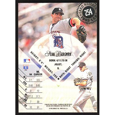 This is a 1995 Leaf Sean Bergman baseball card. The card is #254 and pictures show condition.