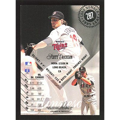 This is a 1995 Leaf Scott Erickson baseball card. The card is #287 and pictures show condition.