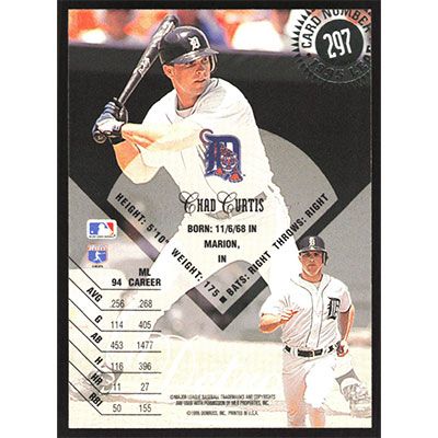 This is a 1995 Leaf Chad Curtis baseball card. The card is #297 and pictures show condition.