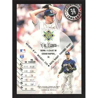 This is a 1995 Leaf Cal Eldred baseball card. The card is #34 and pictures show condition.