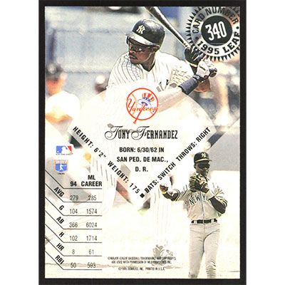 This is a 1995 Leaf Tony Fernandez baseball card. The card is #340 and pictures show condition.