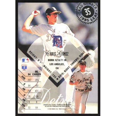 This is a 1995 Leaf Chris Gomez baseball card. The card is #35 and pictures show condition.