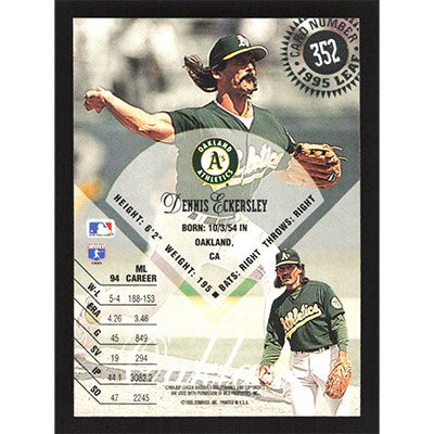 This is a 1995 Leaf Dennis Eckersley baseball card. The card is #352 and pictures show condition.
