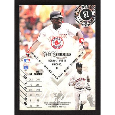 This is a 1995 Leaf Wes Chamberlain baseball card. The card is #82 and pictures show condition.
