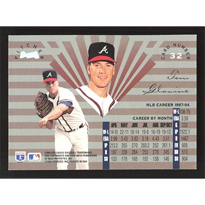 This is a 1995 Leaf Limited Tom Glavine baseball card. The card is #32 and pictures show condition.