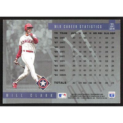 This is a 1995 Leaf Limited Bat Patrol Will Clark baseball card. The card is #11 and pictures show condition.