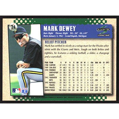 This is a 1995 Score Mark Dewey baseball card. The card is #24 and pictures show condition.