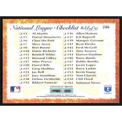 This is a 1995 Select Barry Bonds Checklist baseball card. The card is #246 and pictures show condition.