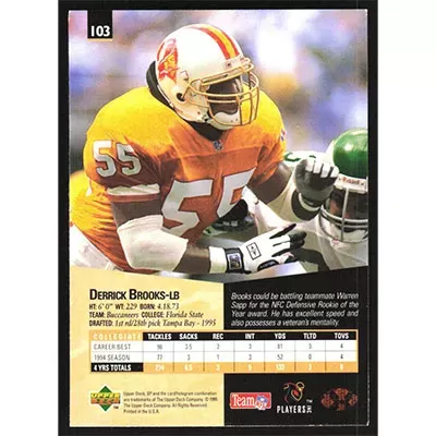 This is a 1995 SP Derrick Brooks football card. The card is #103 and pictures show condition.