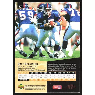This is a 1995 SP Dave Brown football card. The card is #77 and pictures show condition.