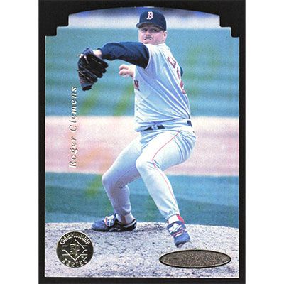 This is a 1995 SP Championship Die Cuts Roger Clemens baseball card. The card is #122 and pictures show condition.
