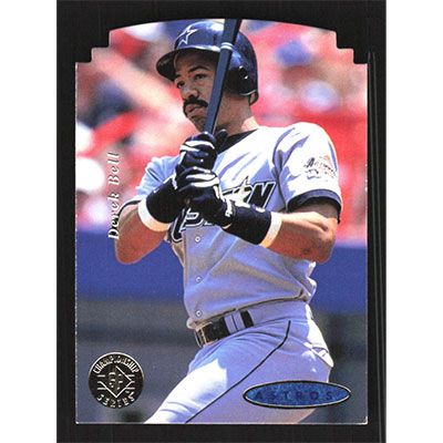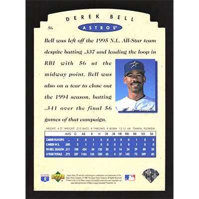 This is a 1995 SP Championship Die Cuts Derek Bell baseball card. The card is #56 and pictures show condition.
