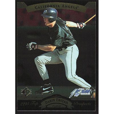 This is a 1995 SP Top Prospects Darin Erstad baseball card. The card is #25 and pictures show condition.