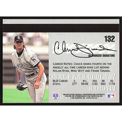 This is a 1995 Studio Chuck Finley baseball card. The card is #132 and pictures show condition.